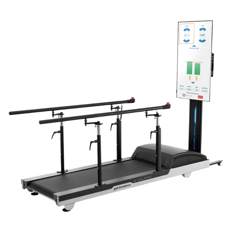 AXELERO Gait & Balance este un echipament avansat care permite reeducarea mersului și îmbunătățirea echilibrului. Acesta a fost special conceput pentru pacienți cu tulburări de mers și echilibru, cauzate de afecțiuni neurologice, ortopedice, leziuni musculare sau boli ale sistemului cardiovascular.