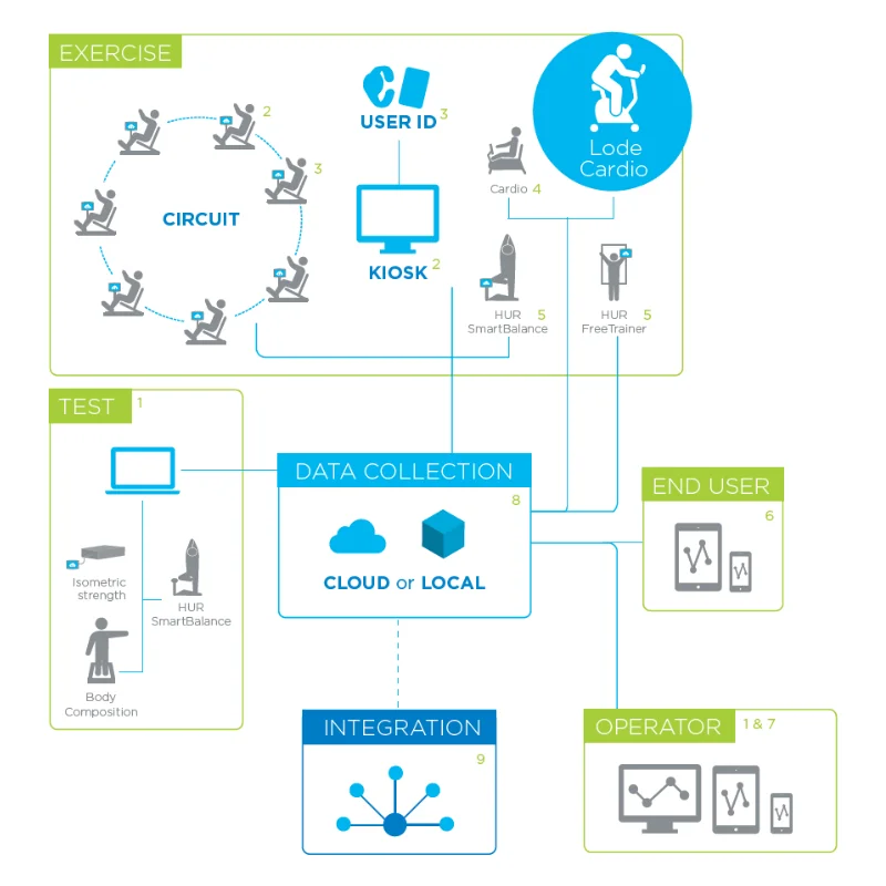 Ecosistemul HUR integrează echipamente avansate, concepute pe baza cercetărilor științifice, dedicate dezvoltării forței musculare și recuperării medicale. Totodată, acesta include dispozitive pentru evaluarea și testarea performanțelor fizice, echipamente pentru îmbunătățirea rezistenței cardiovasculare, concepte medicale personalizate și soluții pentru antrenamente funcționale.